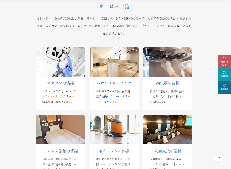 ホームページを公開して以来、想像していた以上に非常に大きな反響がありました。個人のお客様からの『エアコンクリーニング』や『スポットのハウスクリーニング』といった依頼はもちろんのこと、以前は獲得が難しかった『受水槽の清掃』や『定期清掃案件』など、法人・事業者様からの大型で継続的な依頼も大幅に増加しました。